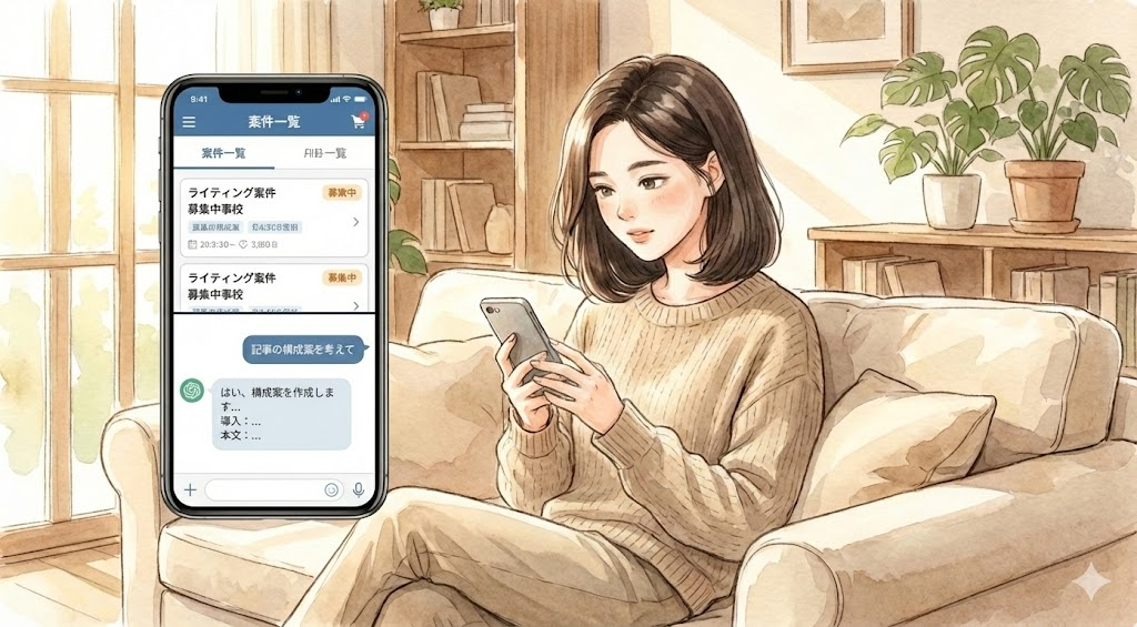 こんなちょっとした「隙間時間」に、スマホでリサーチをしたり、AIに指示を出して下書きを作ったりと、作業を細切れに進められます。リビングでもカフェでも、場所を選ばずに働けるのは大きな魅力ですよね!